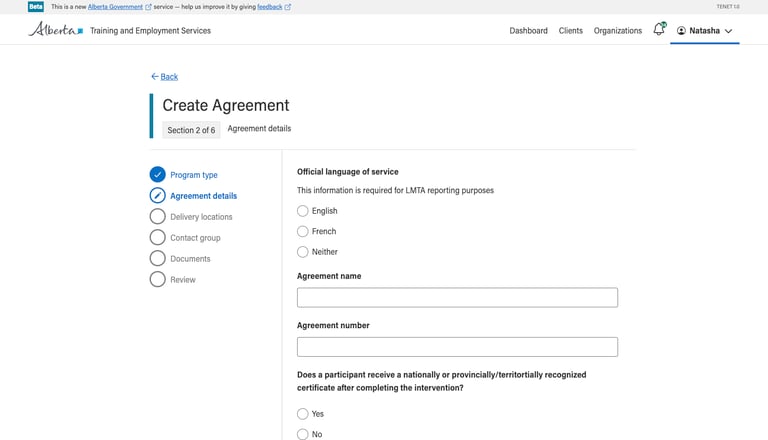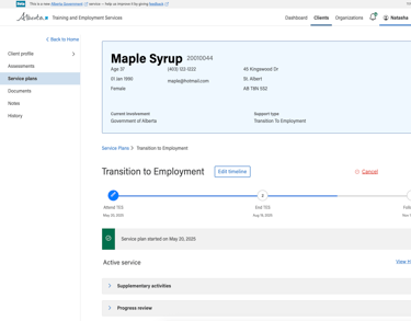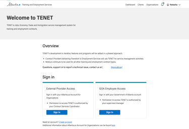TENET 1.0 (Training and Employment Network Enterprise Tracking) was designed as an in-house solution to simplify workflows for the 235 users, reduce operational risk, and give the government greater control over maintenance, scalability, and long-term costs. It caters to approx. 4500 participants/clients in programs annually.