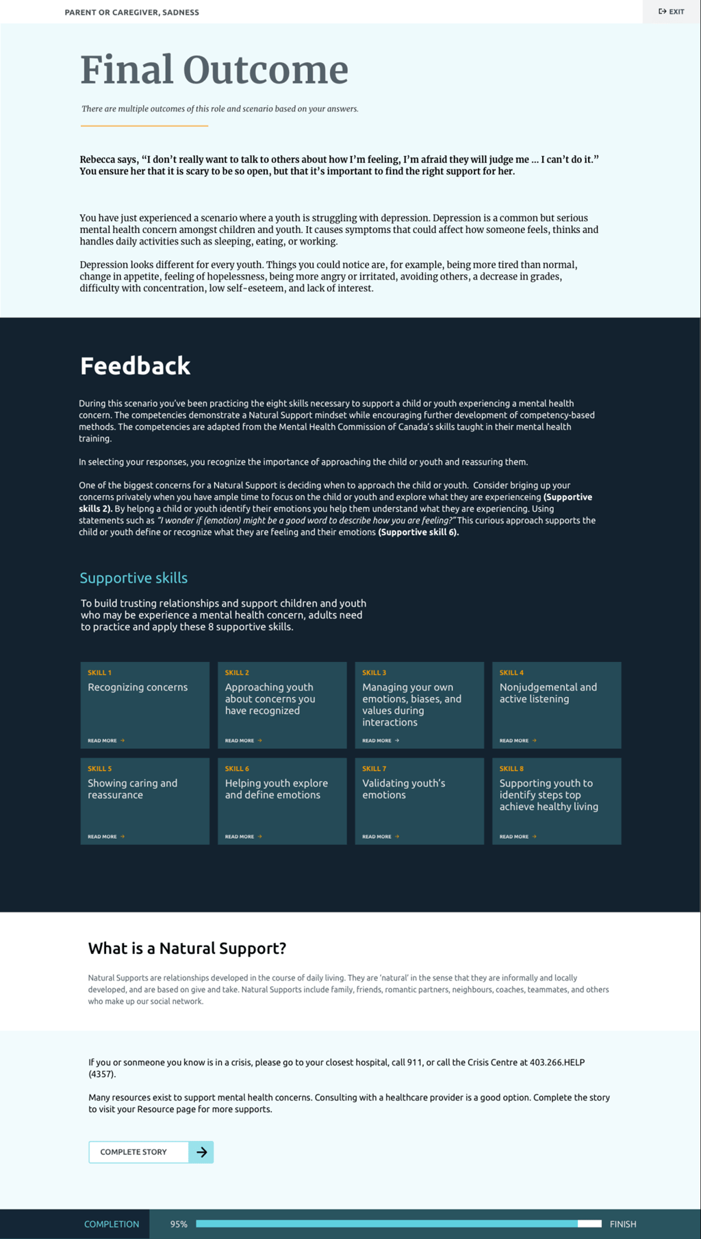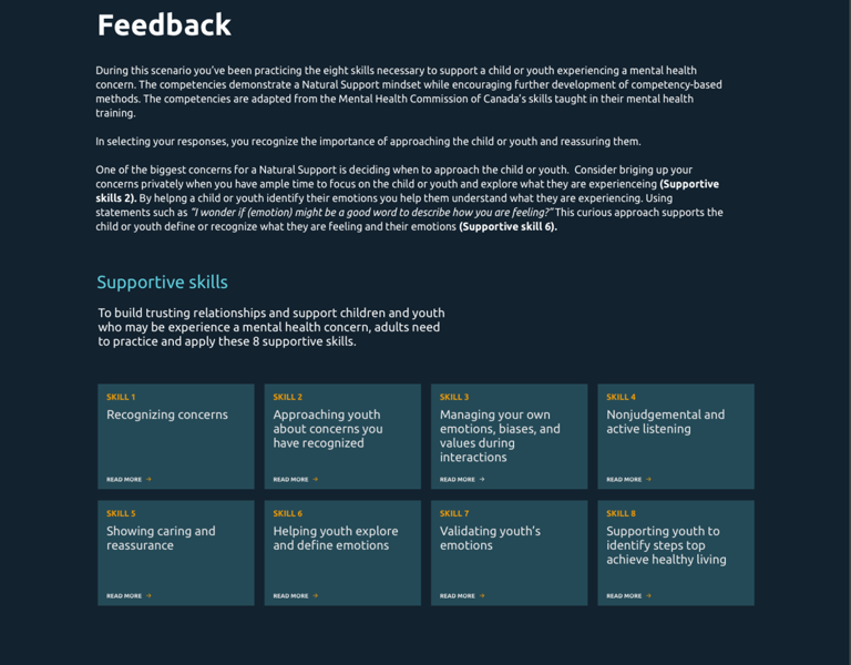 Developed by The Social Impact Lab in 2019, the Natural Supports Simulation (NSYYC) is a digital interactive tool that guides adults through mock scenarios of day-to-day interactions with a child or youth.