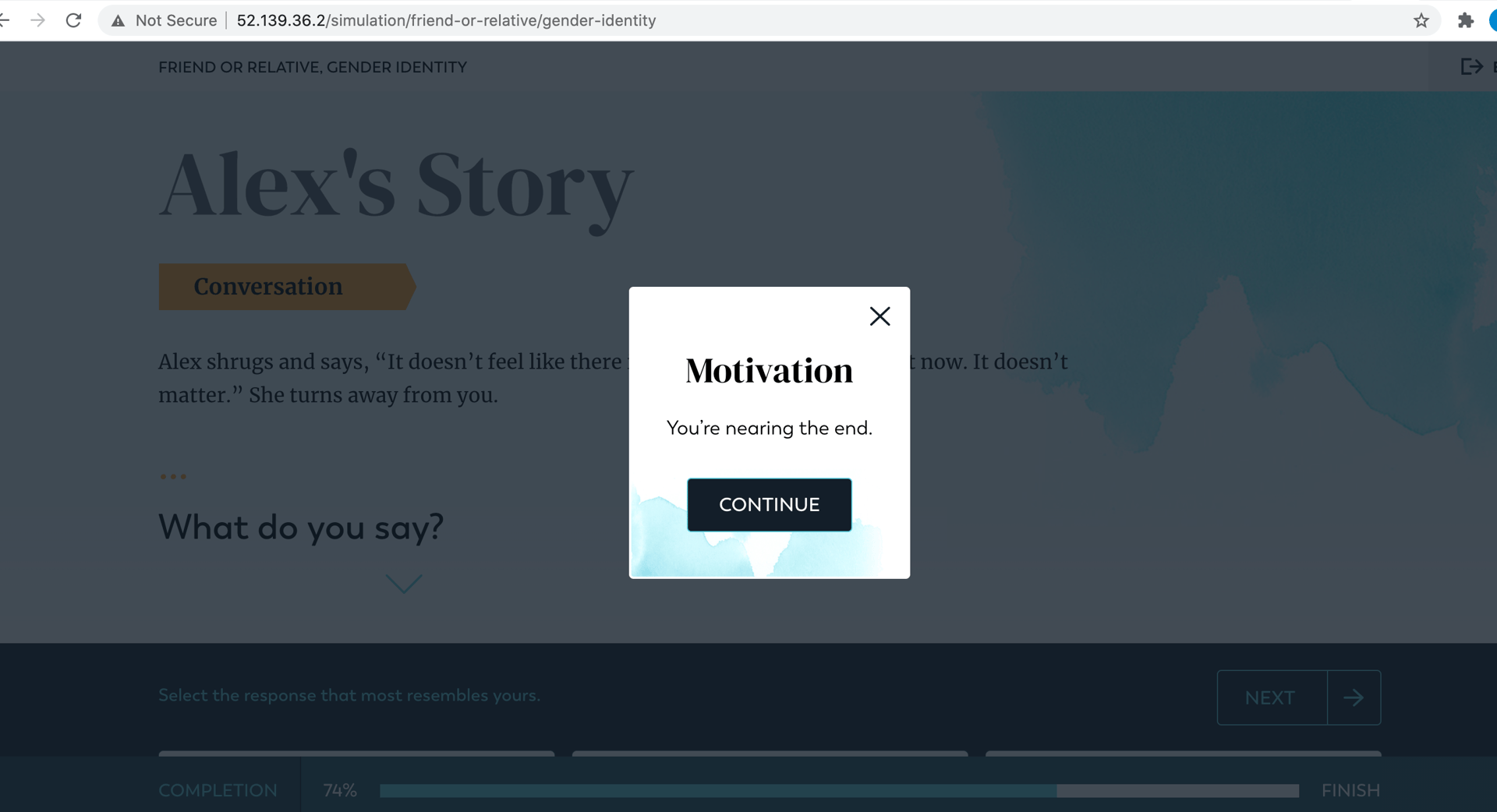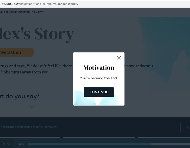 ✔️ Revised the interstitial messaging to include motivational phrases, such as "You're halfway there—keep going!"