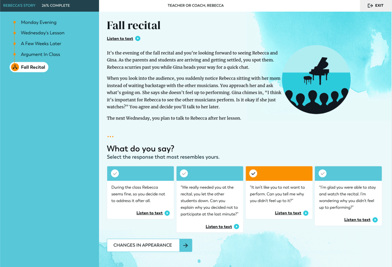 In the third iteration, another team at Evans Hunt fulfilled our original goals of adding illustrations and text-to-speech functionality.