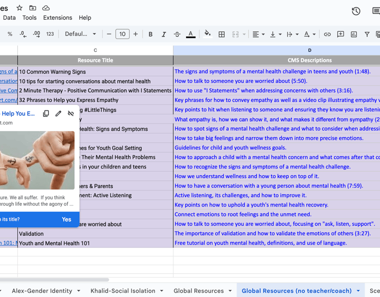 Iterative design for a youth mental health online simulator tool.