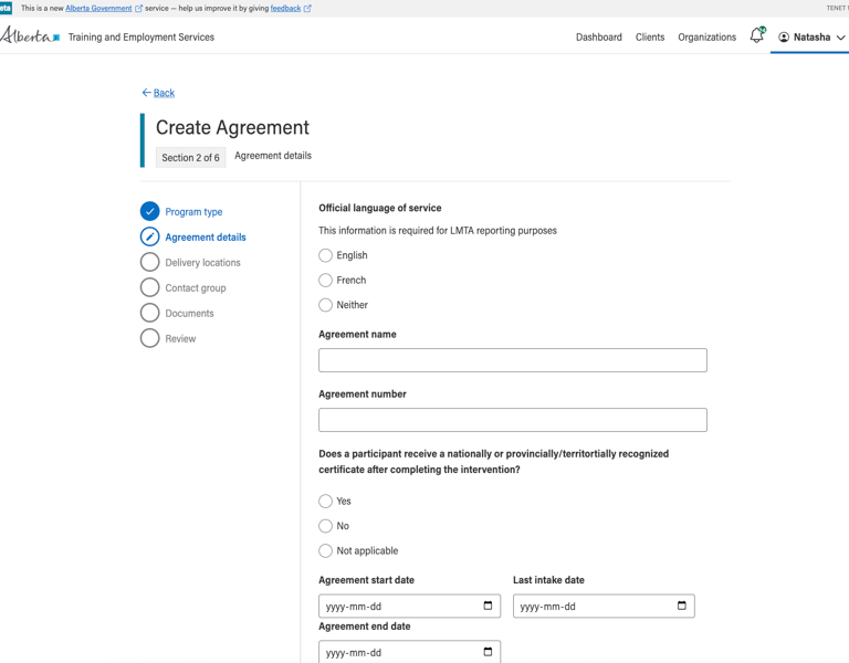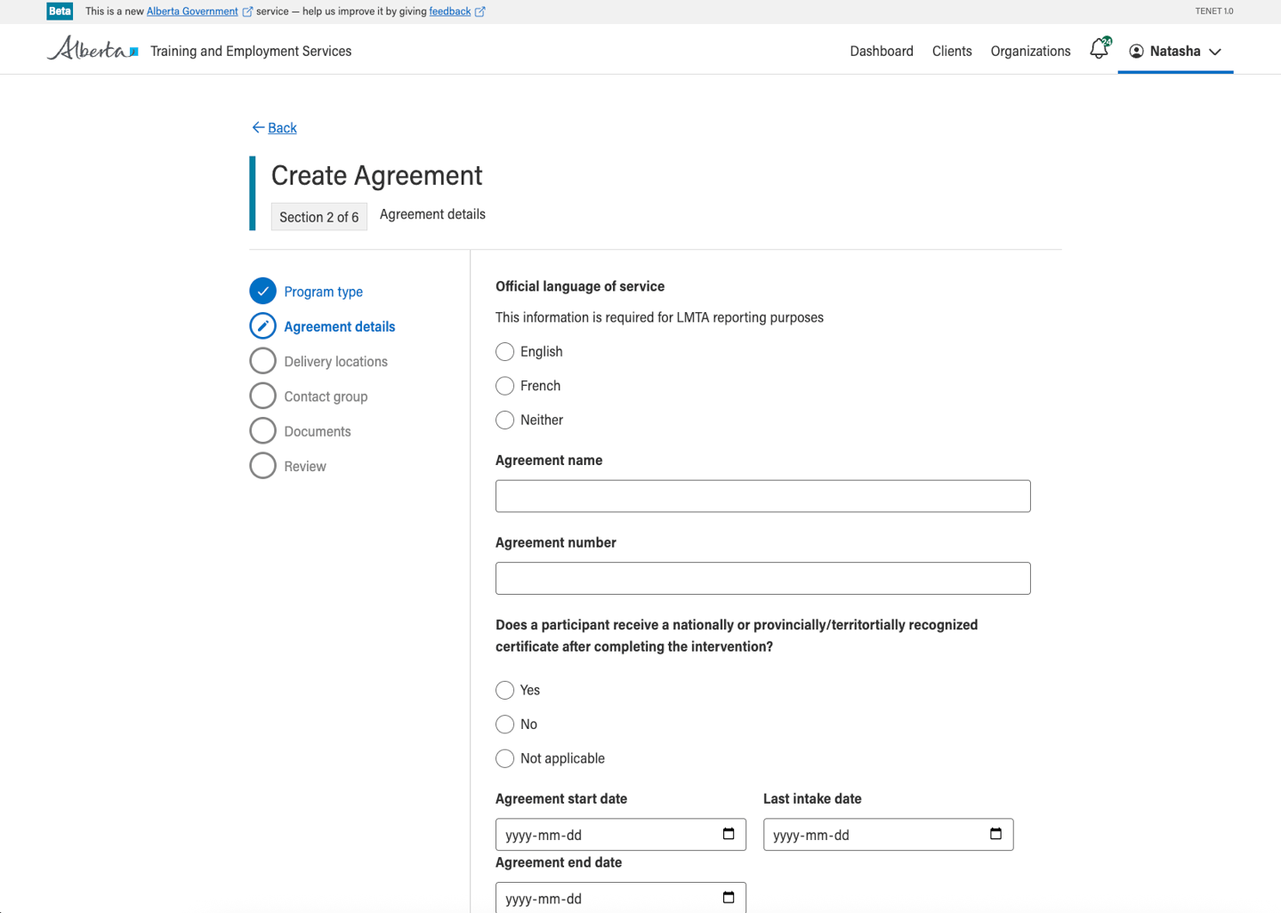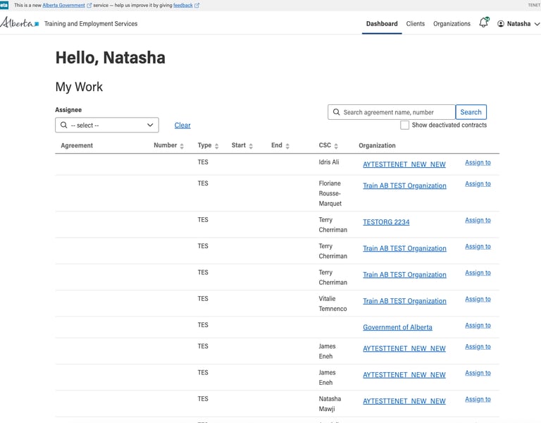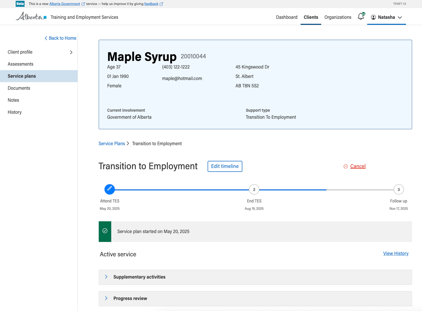 TENET 1.0 (Training and Employment Network Enterprise Tracking) was designed as an in-house solution to simplify workflows for the 235 users, reduce operational risk, and give the government greater control over maintenance, scalability, and long-term costs. It caters to approx. 4500 participants/clients in programs annually.